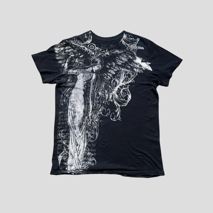 Koszulka Gotycka z Anielską Postacią i Skrzydłami Affliction