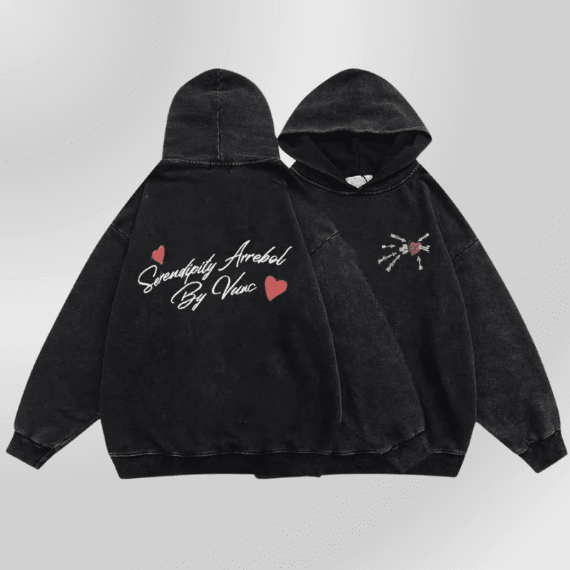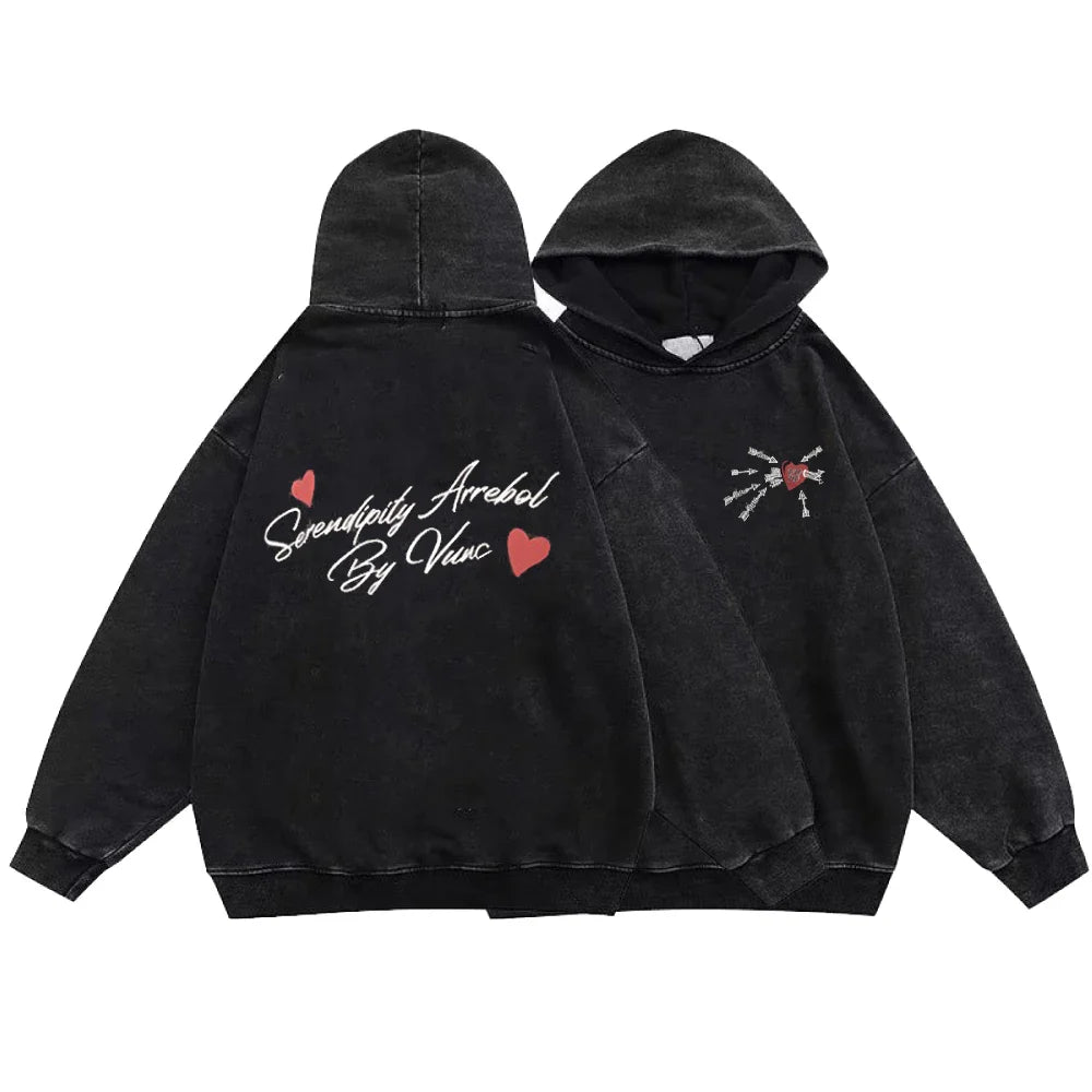 Alternatyvus juodas Grunge džemperis su gobtuvu - Heart