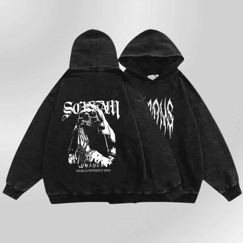 Alternatyvus juodas Grunge džemperis su gobtuvu - Pray