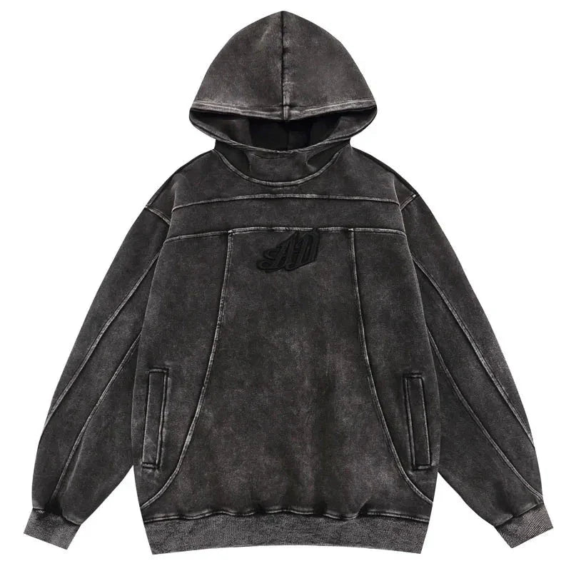 Alternatyvus juodas Grunge stiliaus džemperis su gobtuvu Y2K