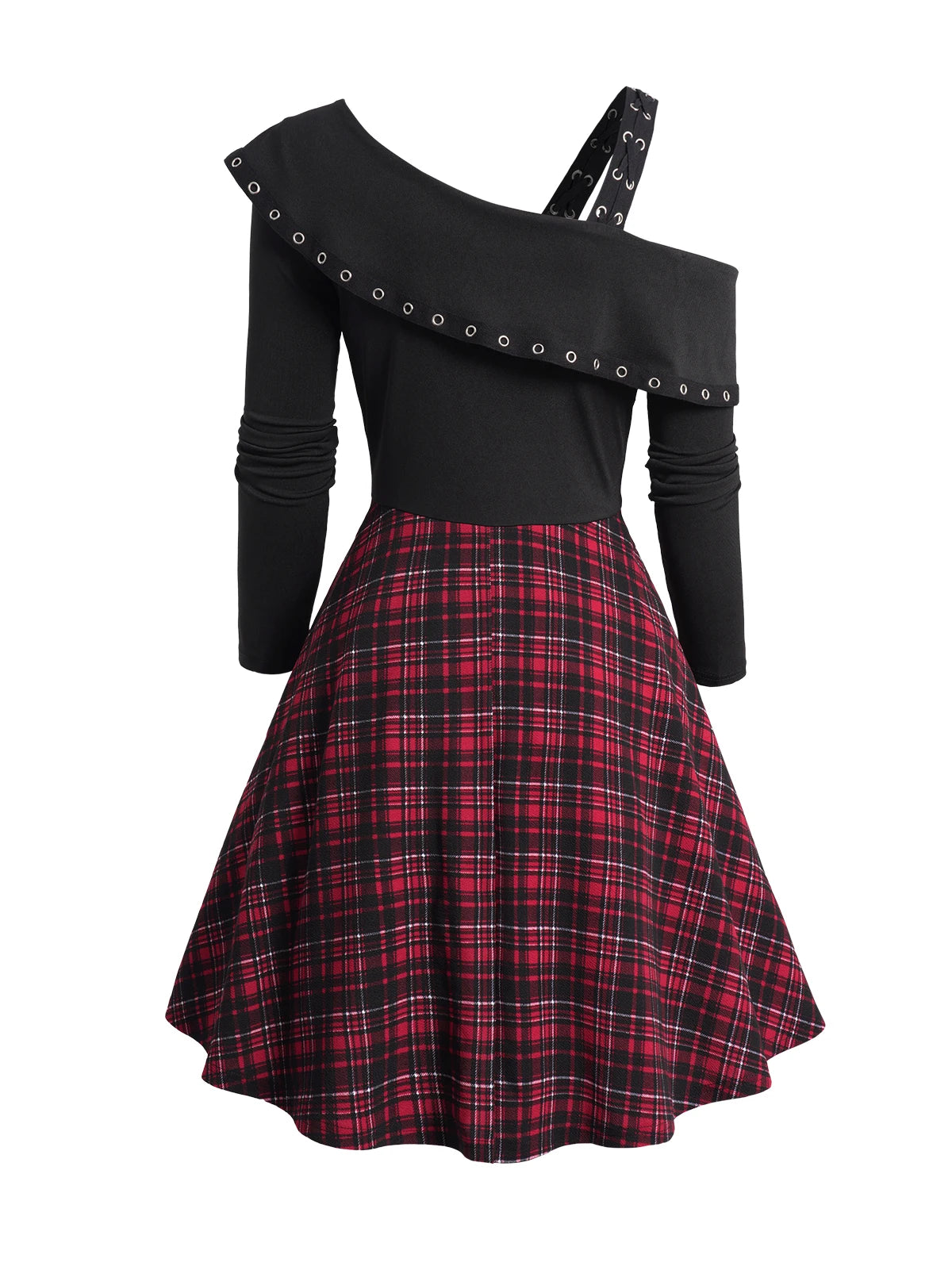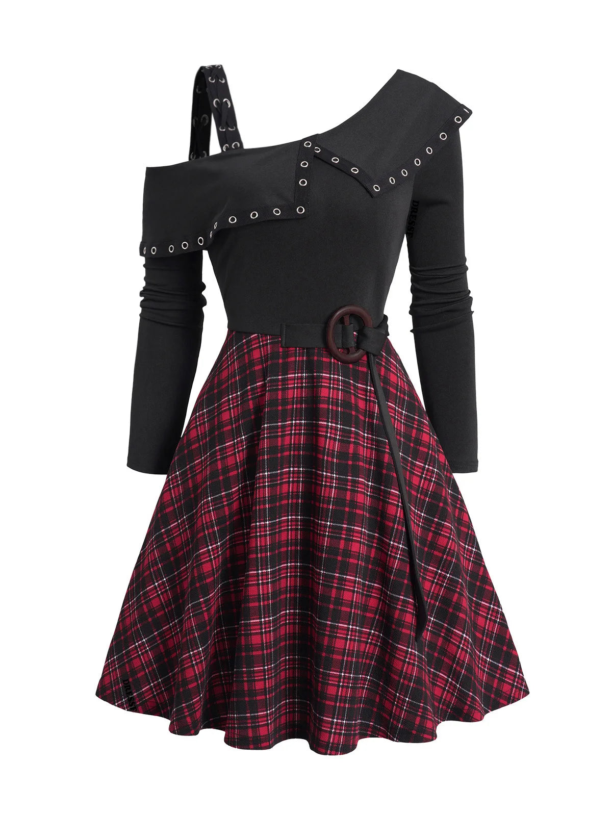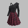 Asimetriška juoda suknelė su raudonais punk langeliais