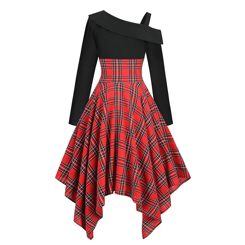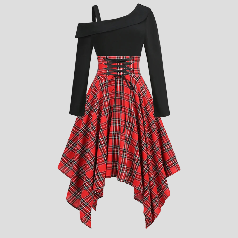 Asimetriška raudona languota suknelė su korsetu, Punk Rock stilius