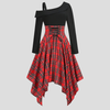 Punk Rock Sukienka Czerwona w Kratę Asymetryczna z Gorsetem