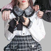 Balti gotikiniai marškiniai su nėriniuota apykakle ir dideliu kaspinu Lolita Jirai Kei