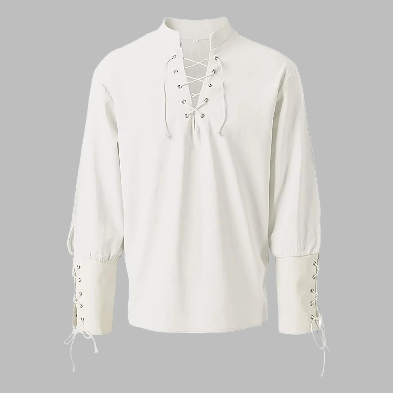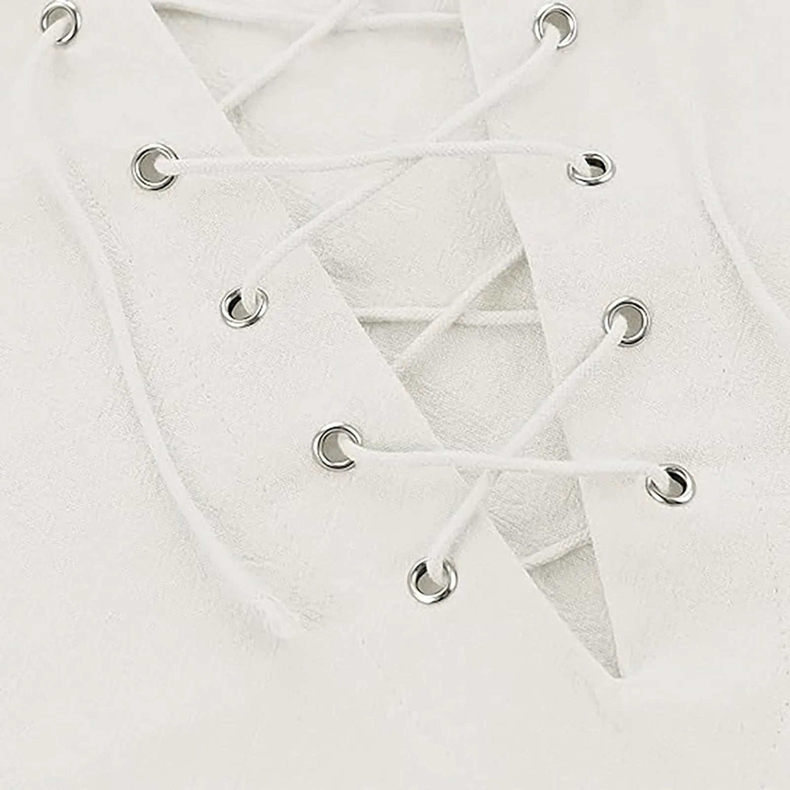 Balti marškiniai su raišteliais ir metalinėmis rankovėmis