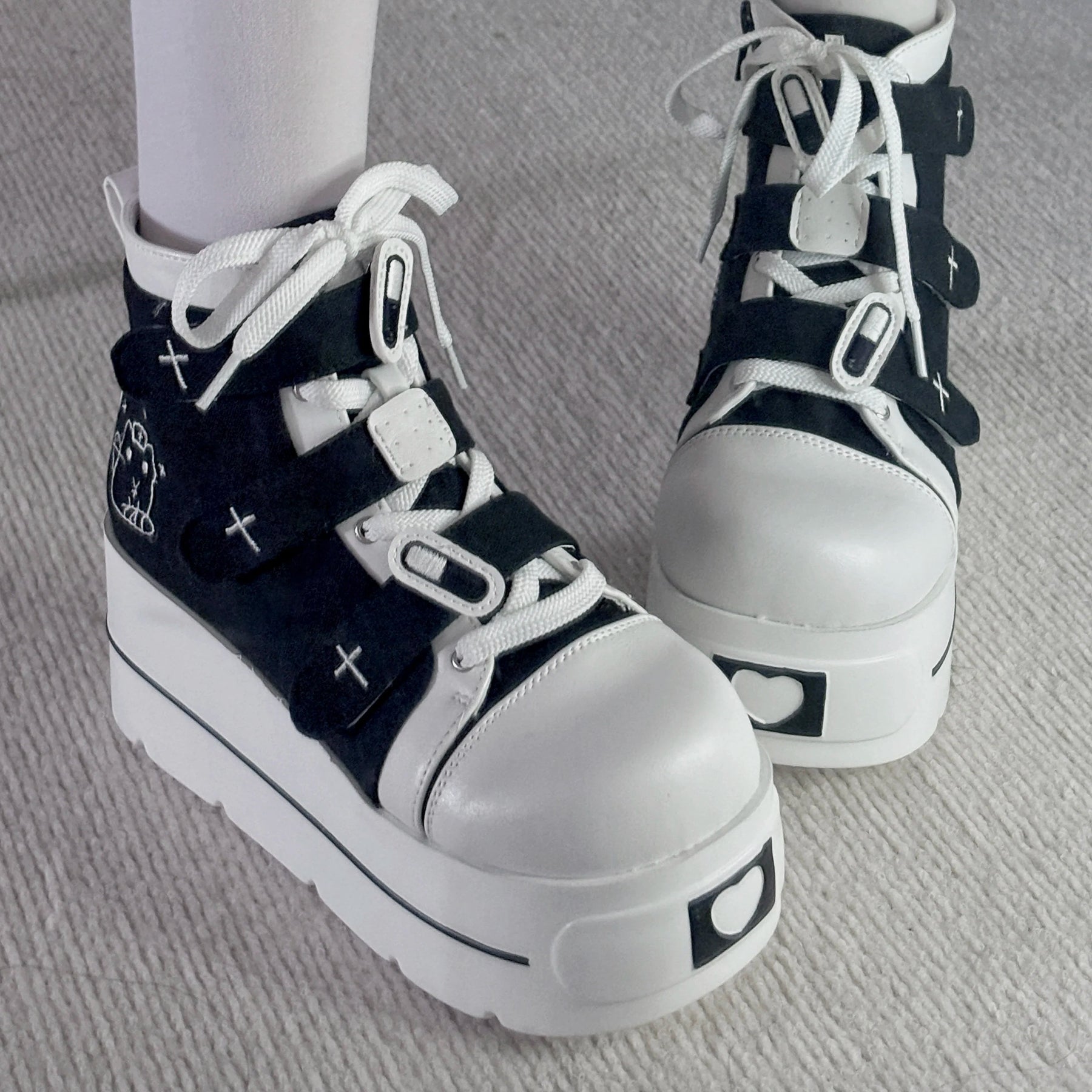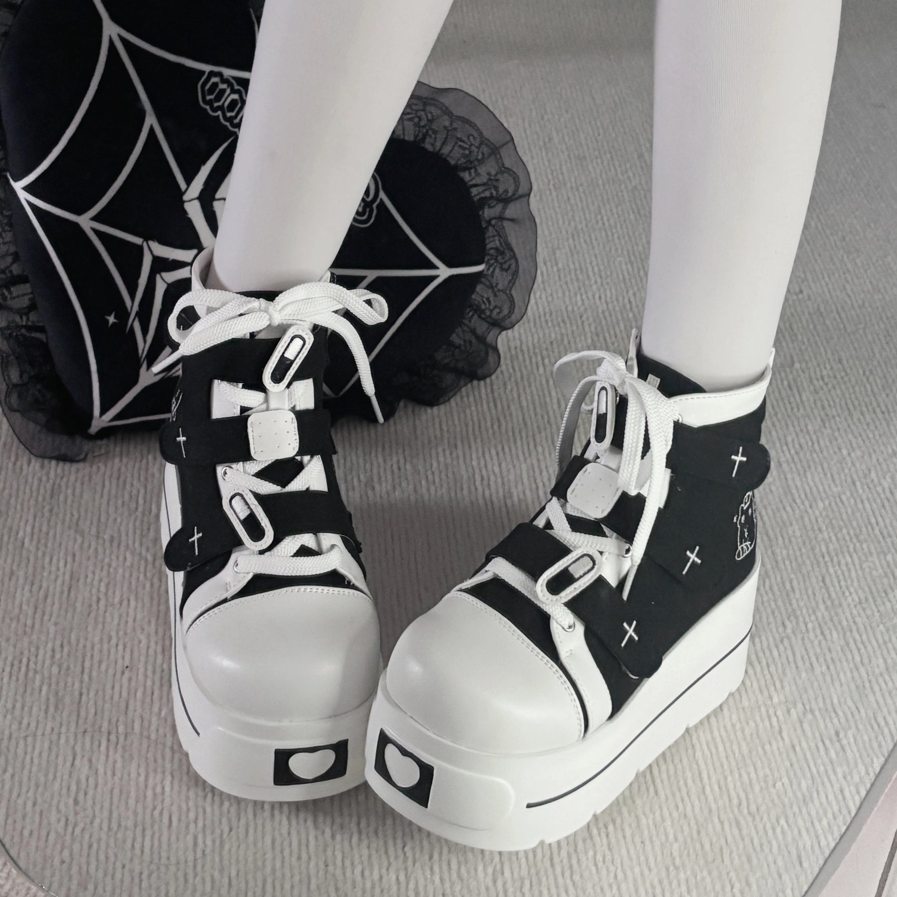 Balti platforminiai batai su žiogeliais ir širdelėmis Jirai Kei