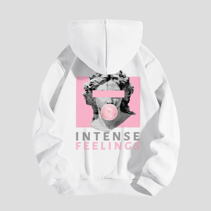 Balti poparto stiliaus džemperis su rožine Intense Feelings grafika