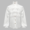 Balti Steampunk marškiniai su nėriniuotu jabotu ir aukšta apykakle XXL
