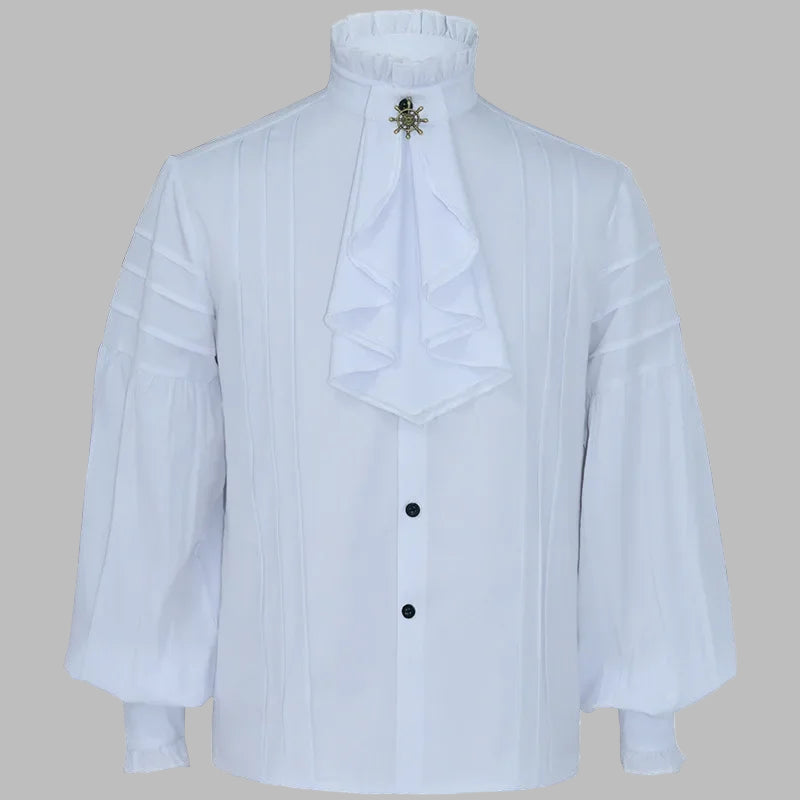 Balti steampunk marškiniai su jabotu ir pūstomis rankovėmis