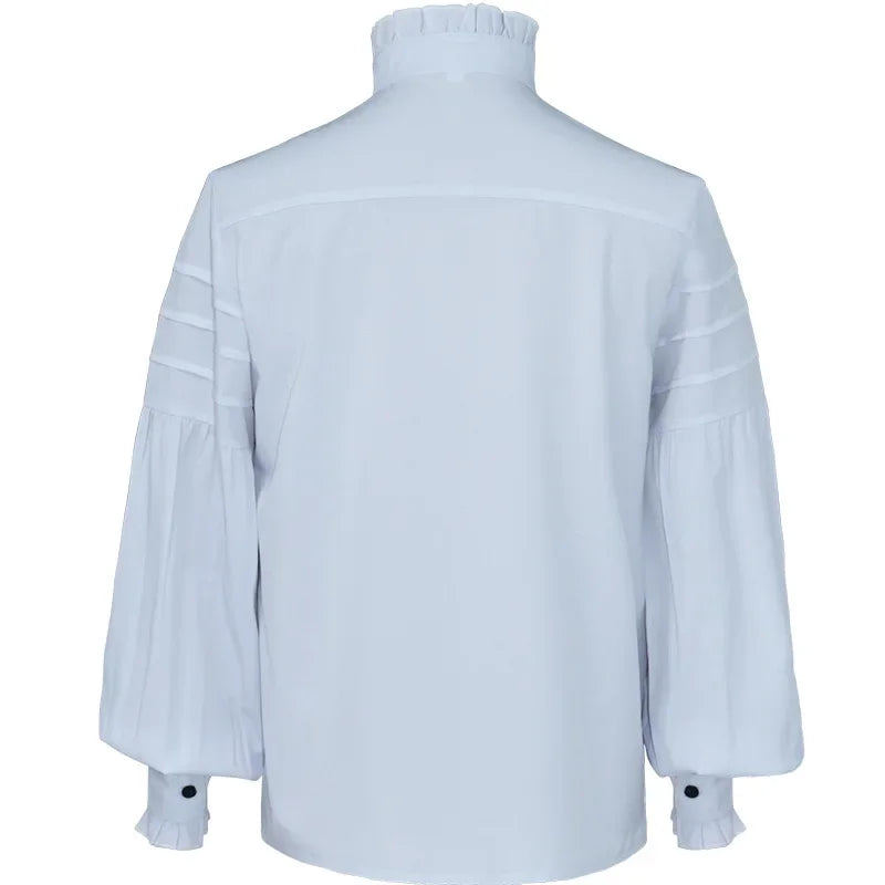 Balti steampunk marškiniai su žabo ir pūstomis rankovėmis