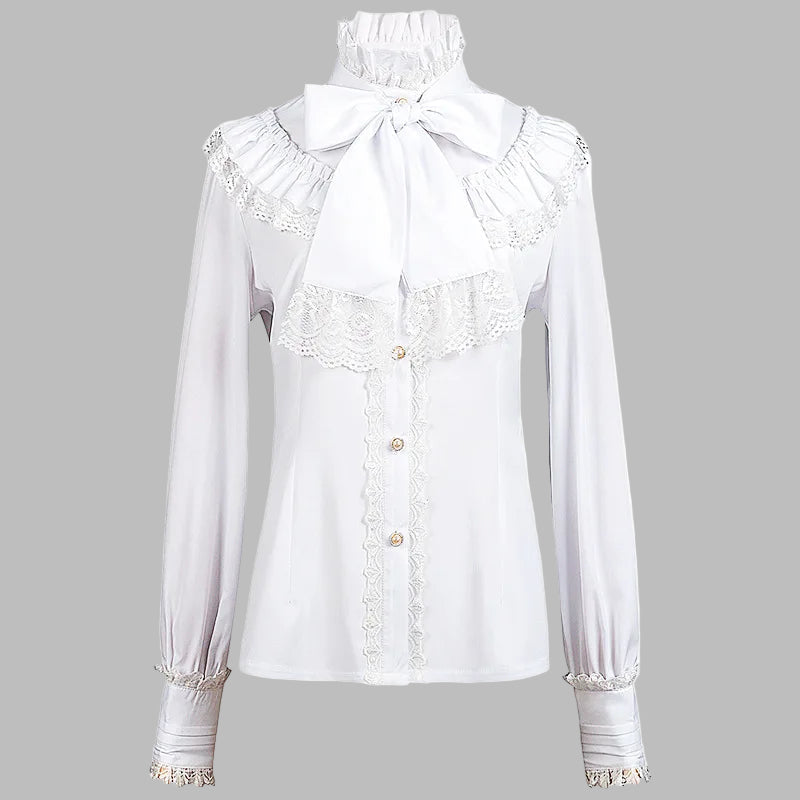 Balti steampunk stiliaus palaidinė su nėrinių aplikacija ir kaspinu Peržiūrėti parinktis