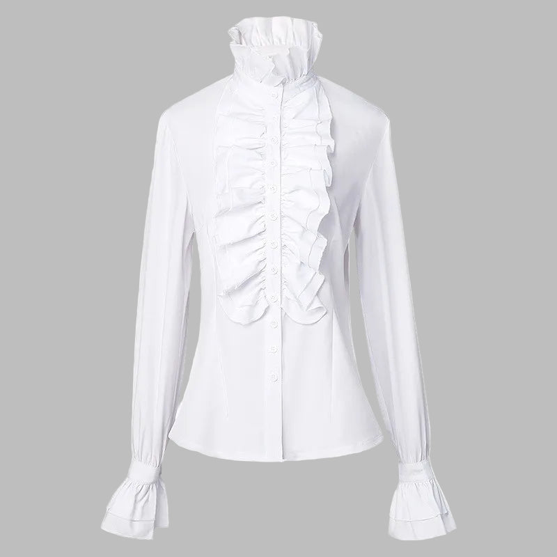 Balti marškiniai su raukiniais ir pūstomis rankovėmis, steampunk stilius