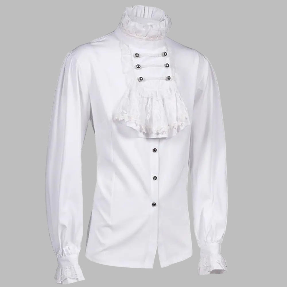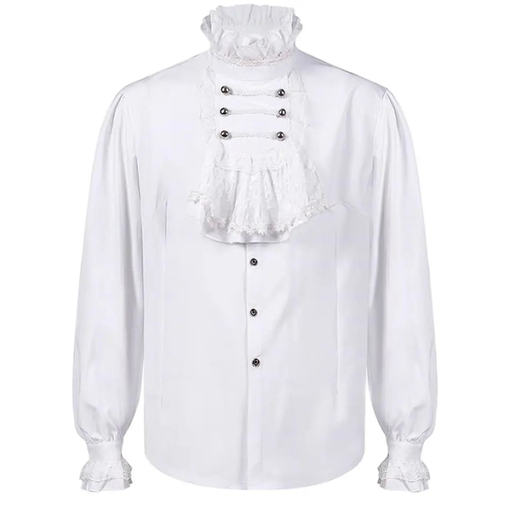 Balti vyriški gotikiniai marškiniai su nėriniuotu jabotu
