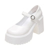 Baltos platforminės Mary Jane su dirželiu ir sagtimi