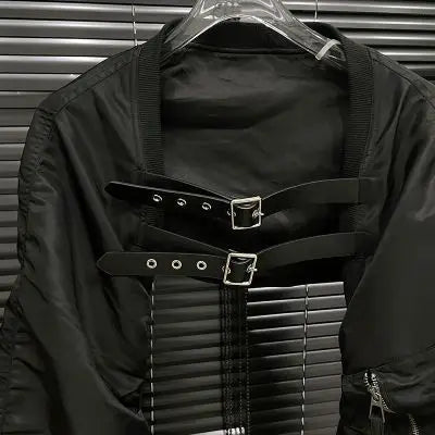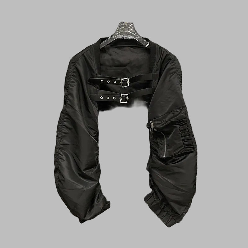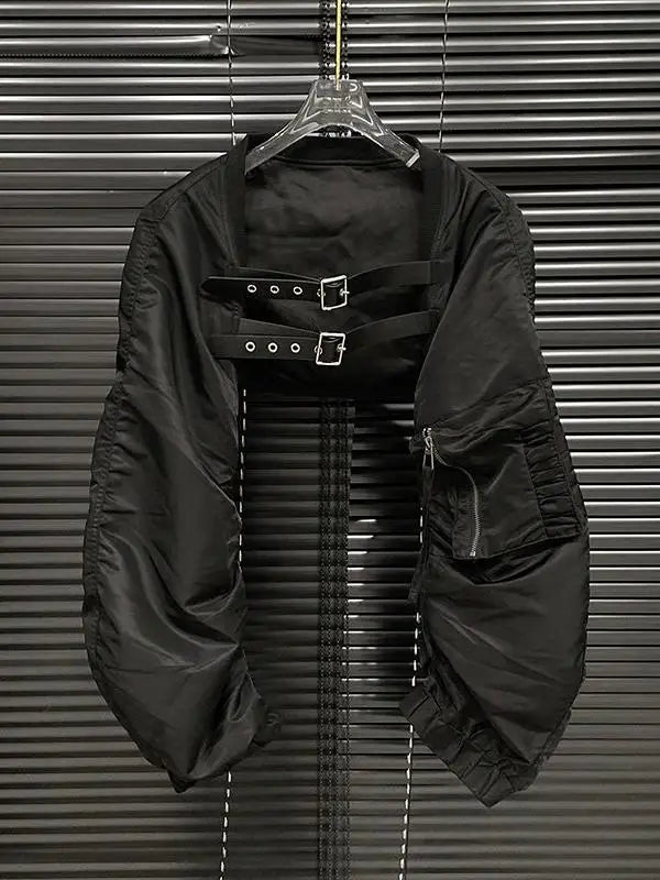 Bolero Cyber Gothic Punk Juodas Trumpas Diržai Sagtelės Industrial Unisex