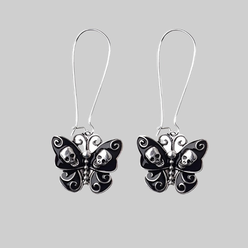 - Puošyba: kaukolės išgraviruotos ant juodo drugelio sparnų, metalinis ornamentas