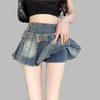 Džinsinis mini sijonas su diržu ir sagtimis, punk stiliaus, vintage