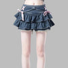 Džinsinis mini sijonas su raukiniais ir rožiniais kaspinais Punk Rock