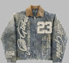 Džinsinis švarkas su užrašais ir kniedėmis, Rock Grunge Metal stiliaus, Vintage