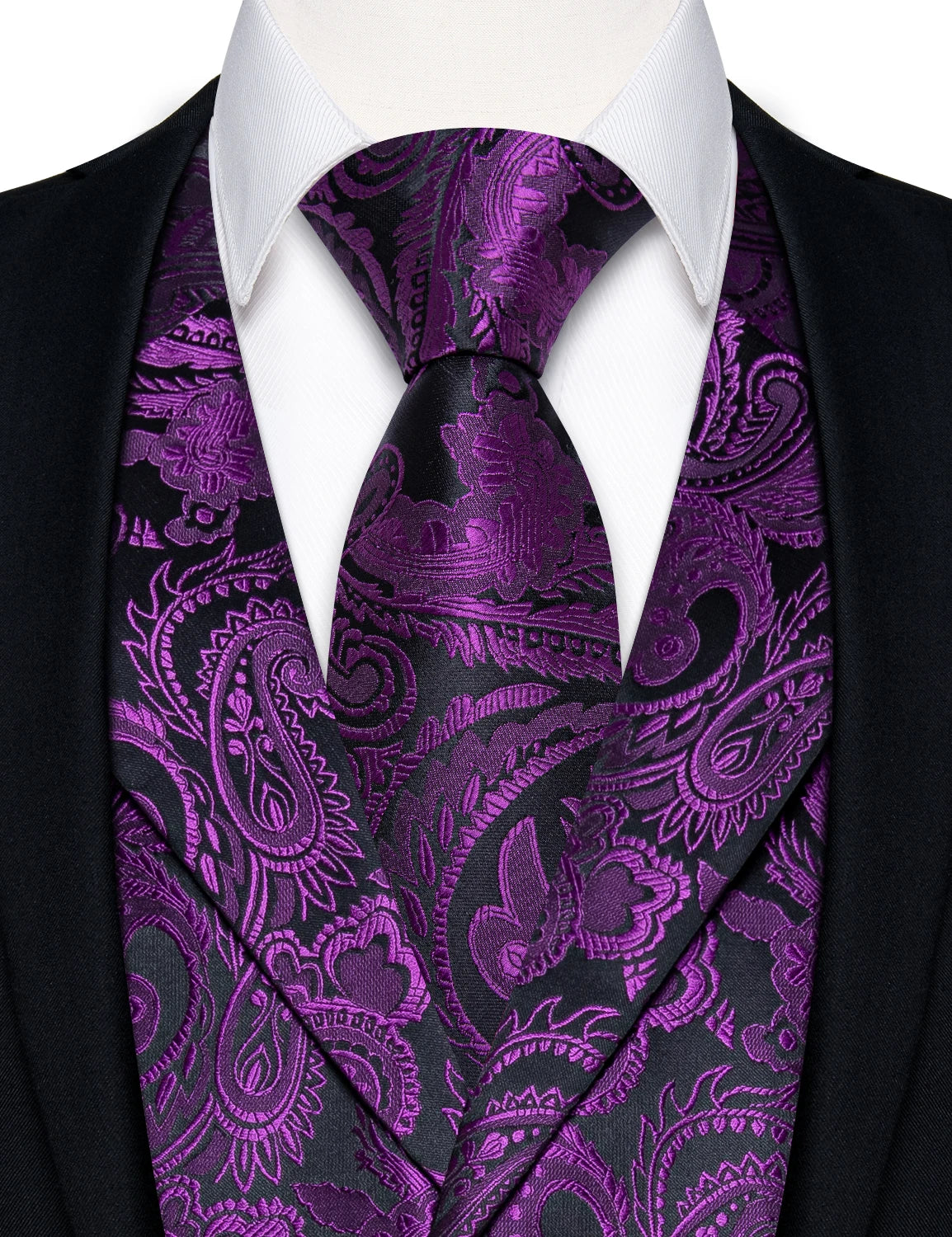 Eleganti violetinė roko stiliaus liemenė su kaklaraiščiu rinkinys