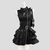 Gotikinė juoda suknelė su juostelėmis ir užtrauktuku, su raukiniais, moteriška Peržiūrėti parinktis