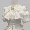 Balta gotikinė Kawaii Lolita palaidinė su nėriniais, kaspinu ir korseto diržu