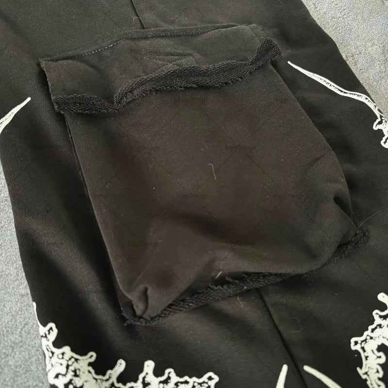 Gotikinės grunge kelnės su skeletų kaulų raštu darkwear Peržiūrėti parinktis