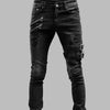 Gotikiniai juodi vyriški džinsai su užtrauktukais ir sagtimis, suplėšyti, roko stiliaus