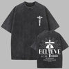 Gotikiniai marškinėliai oversize su kryžiumi ir užrašu Believe Peržiūrėti parinktis