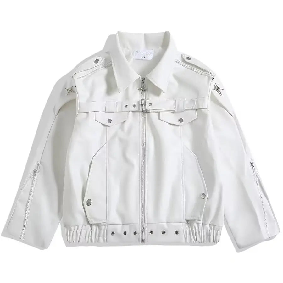 Balta gotikinė odinė striukė paltas korėjietišku stiliumi