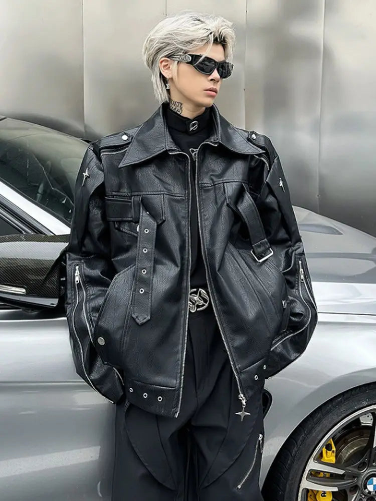 Pasirinkite ryškų ir drąsų stilių su šia vyriška dirbtinės odos striuke – idealiai tinka rudeniui. Dėl praktiškų kišenių, laisvo kirpimo ir motociklinio stiliaus, įkvėpto Y2K tendencijos, puikiai tiks tiek kasdienai, tiek miesto gatvės stiliui.