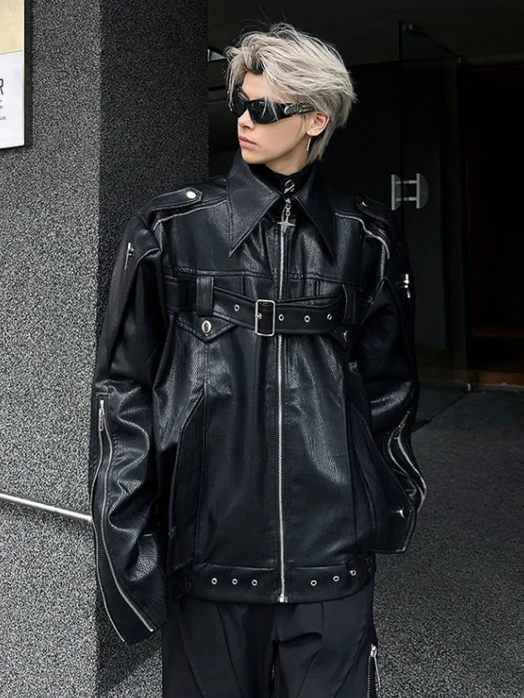 Gotikinio stiliaus odinė paltinė striukė korėjietiško stiliaus Peržiūrėti parinktis