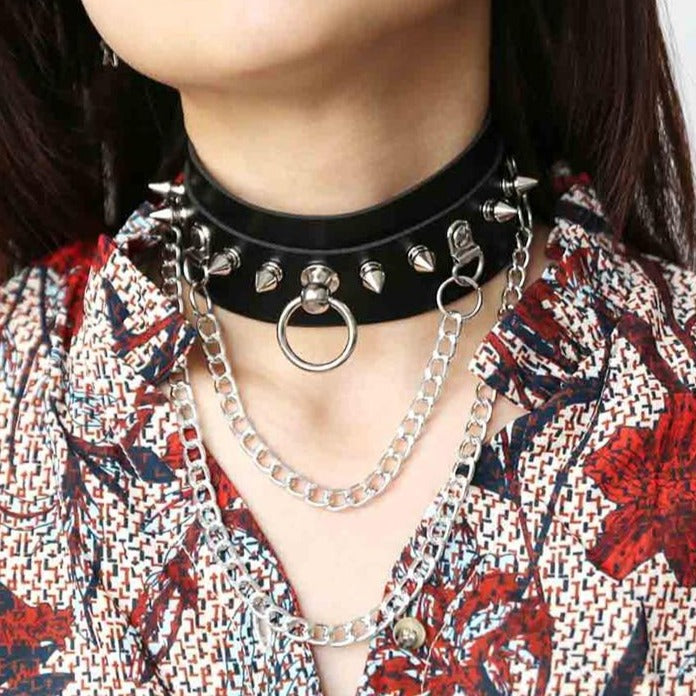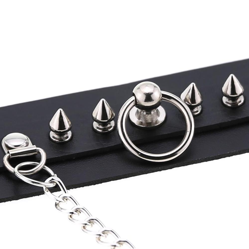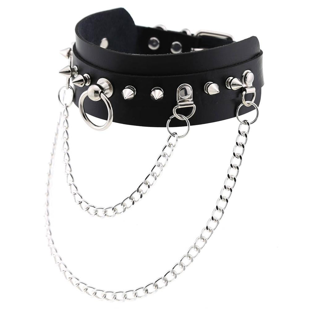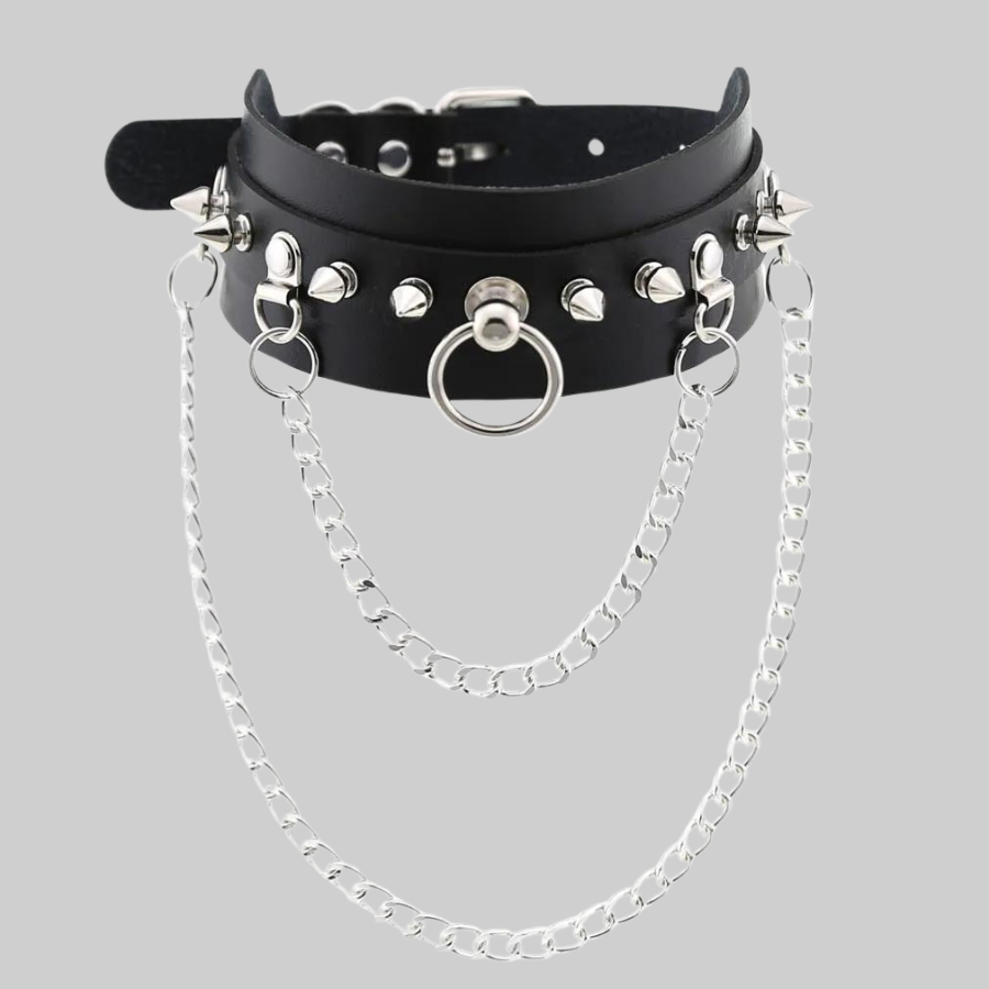 Gotikinis juodas choker su kniedėmis ir grandinėlėmis