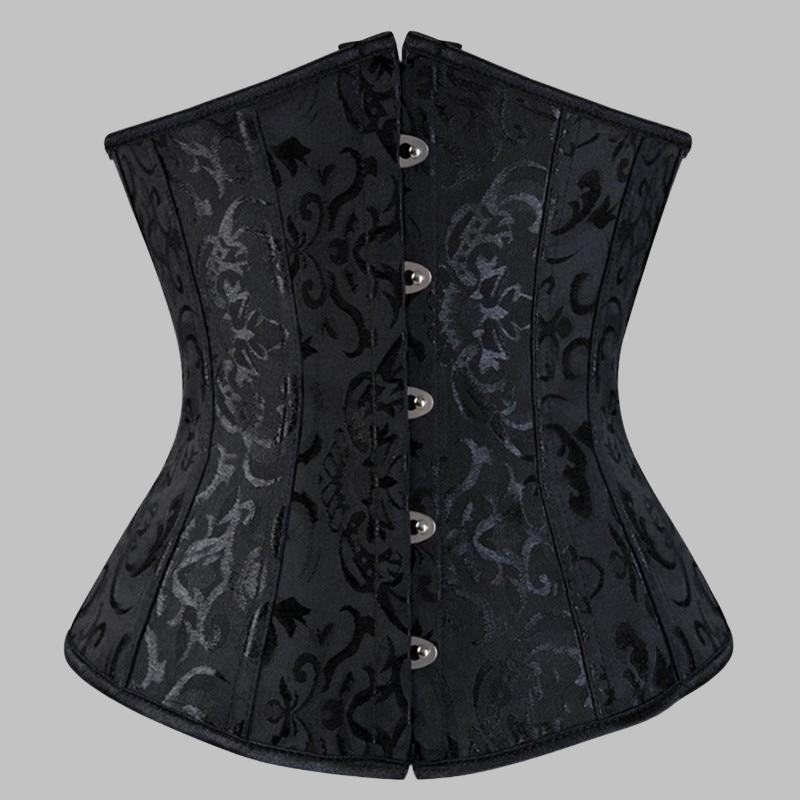 Juodas gotikinis korsetas išsiskiria forma, kuri skirta išlaikyti krūtinę ir suteikti ploną formą. Jo išorinis audinys yra šiek tiek ir primena satino eleganciją ir subtilumą. Pagrindinis modelis yra tamsios spalvos. Tiems, kurie nori eiti už tamsių atspalvių, jis yra raudonas, baltas, mėlynas ir kt.