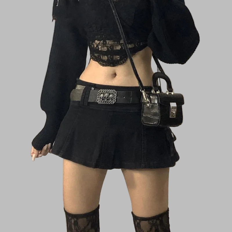 Gotikinis klostuotas mini sijonas su punk metalo aplikacija