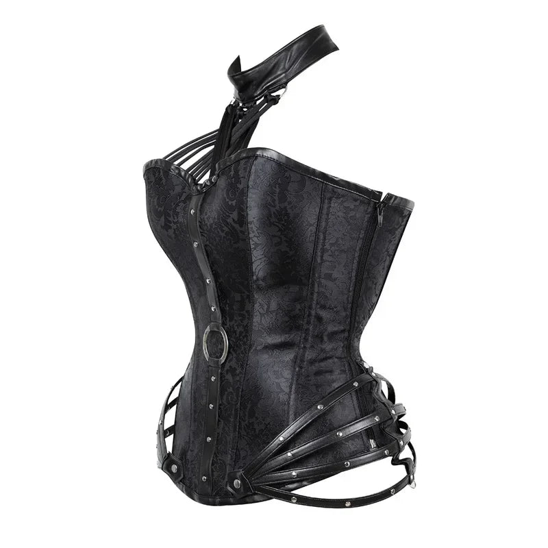 Gotikinis metalinis korsetas su dirželiais ir kniedėmis, juodas, punk rock, 6XL
