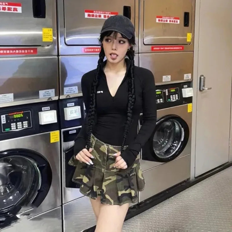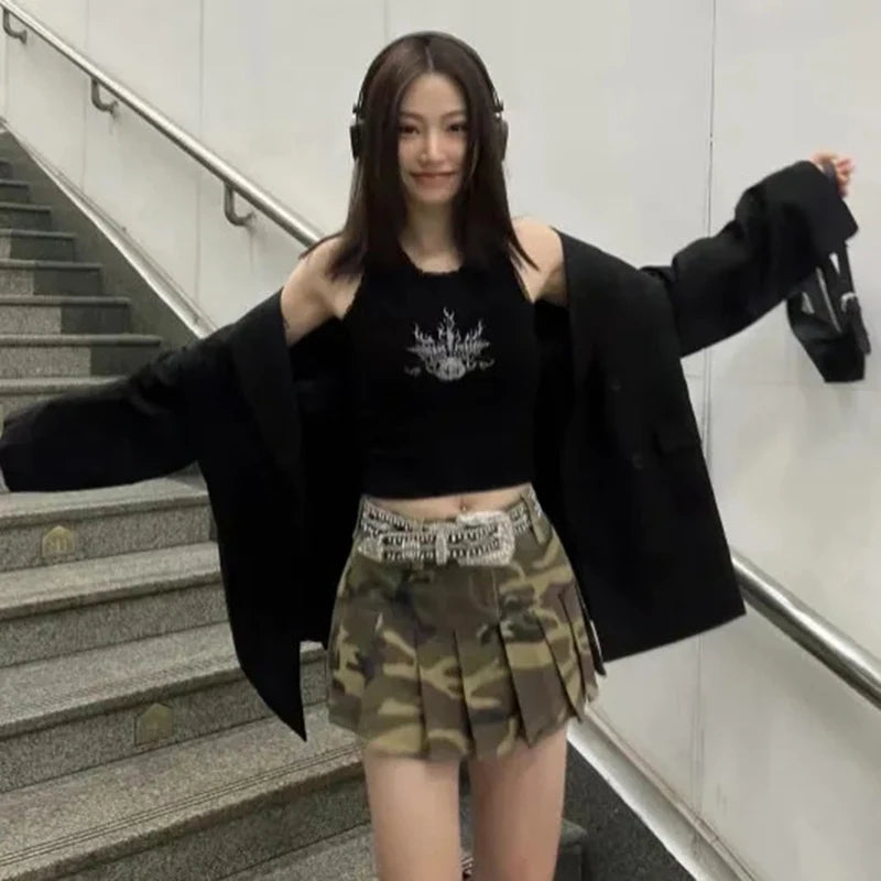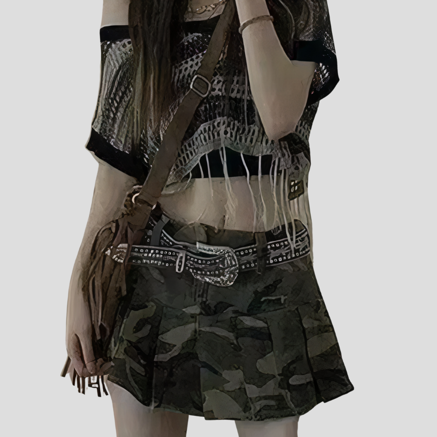 Gotikinis mini sijonas su kamufliažu - alternatyvus klostuotas sijonas