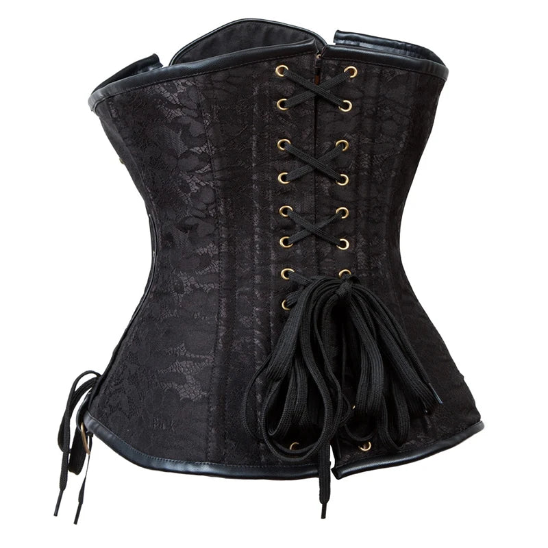 Gotikinis punk korsetas juodas su grandinėmis auksinėmis sagtimis steampunk XXL