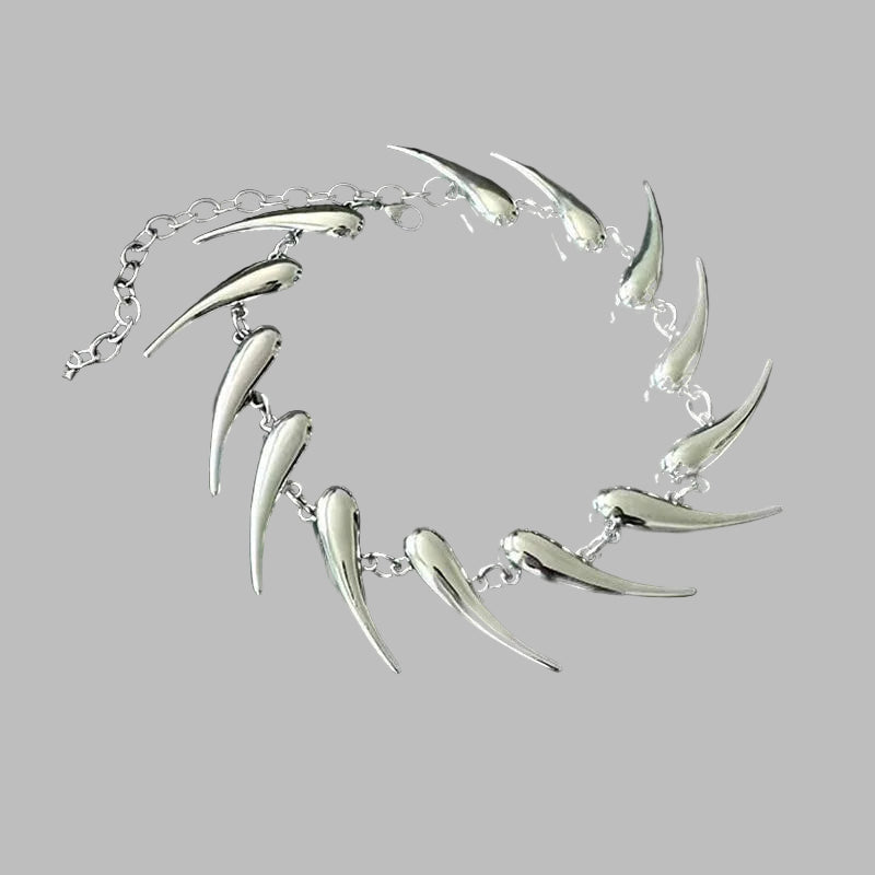 Gotikinis sidabrinis chokeris su metaliniais nagais