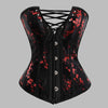 Gotikinis steampunk korsetas juodas su raudonomis gėlėmis ir suvarstymu 6XL