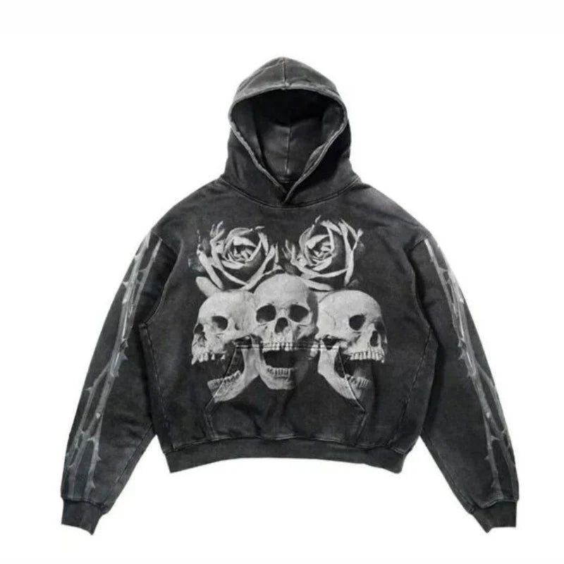 Grunge stiliaus džemperis su gobtuvu „Flower“ su skeletu, XXL