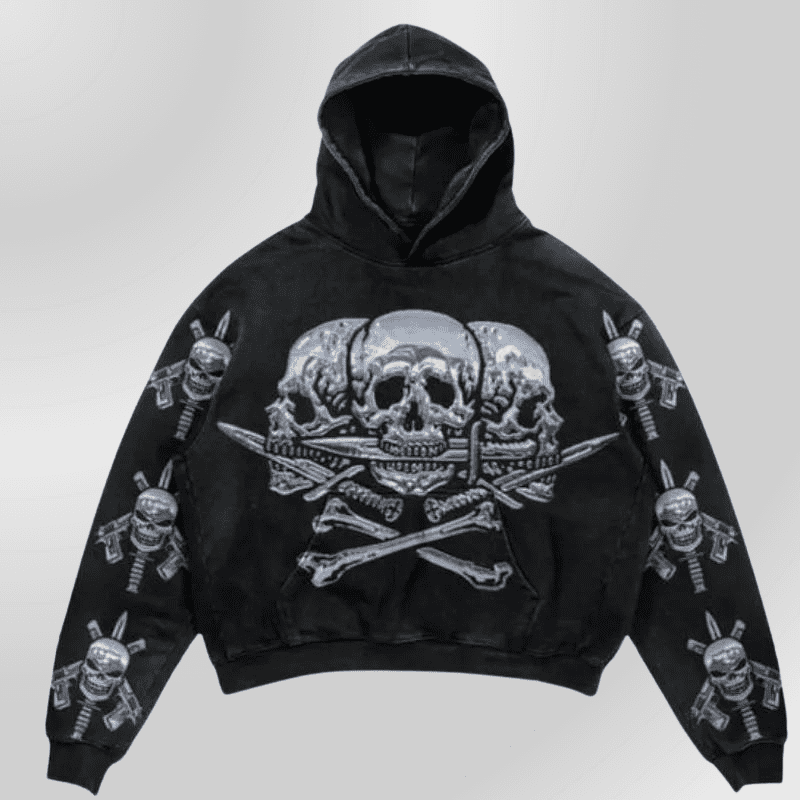 Grunge stiliaus džemperis su gobtuvu „Pirate“ skeletas