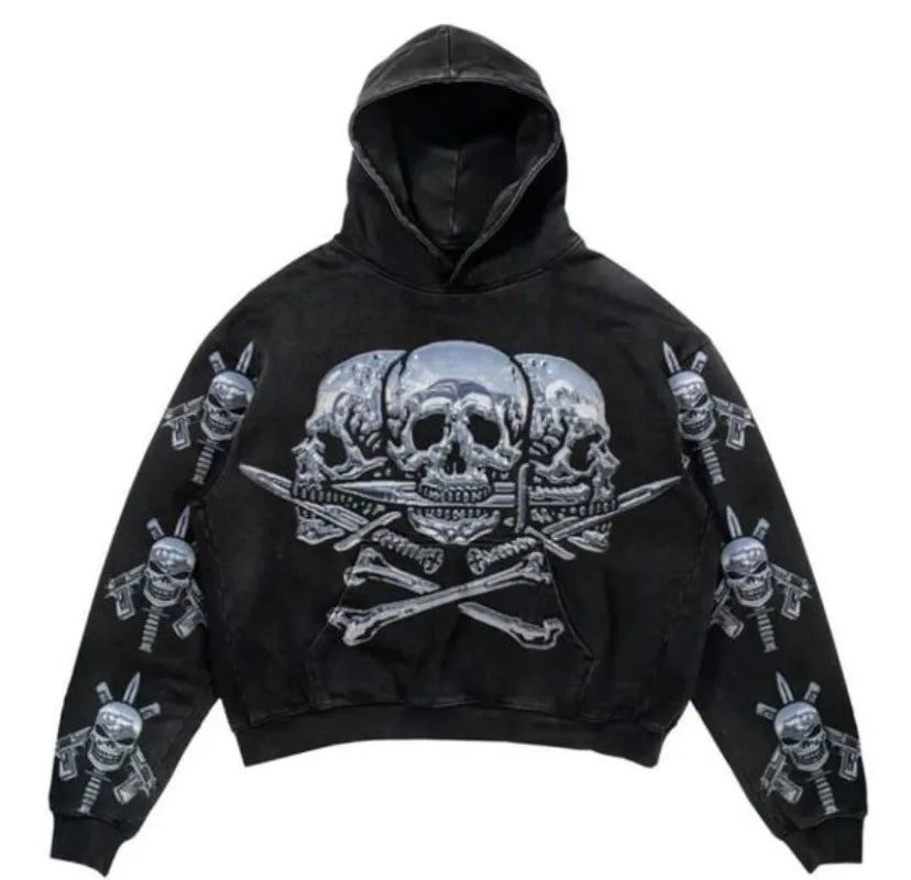 Grunge stiliaus džemperis su gobtuvu ir skeletu - Pirate