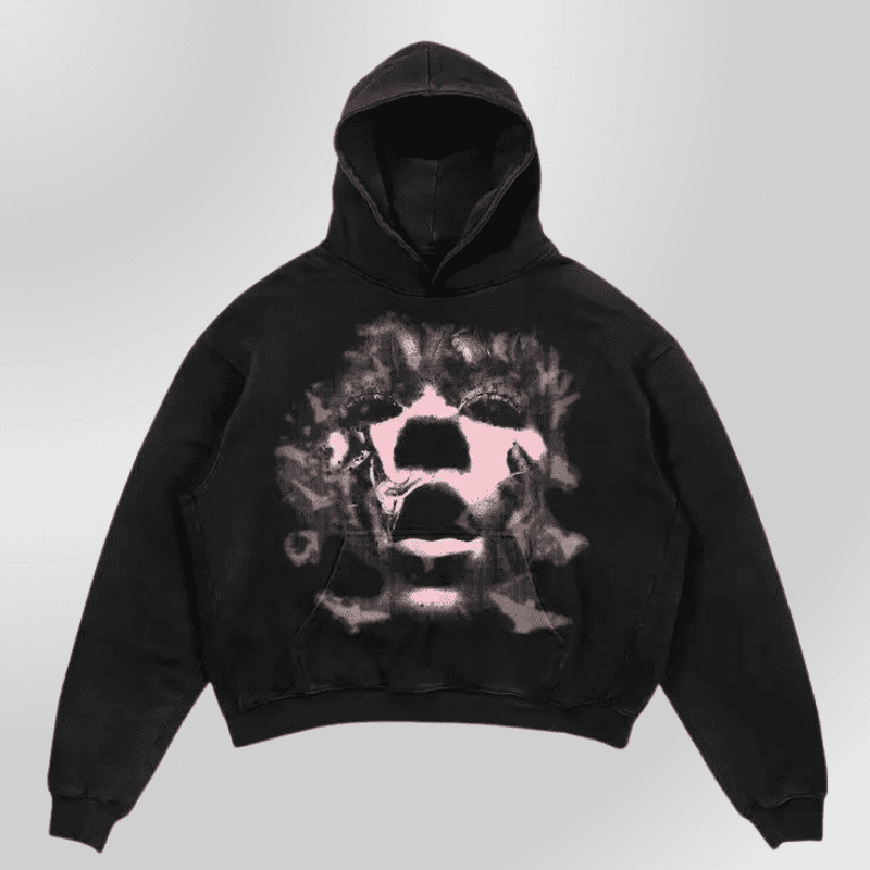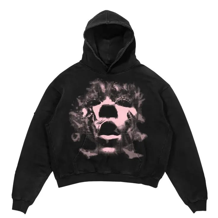 Grunge stiliaus bliuzonas su gobtuvu „Scar“ su skeletu piešiniu, XXL