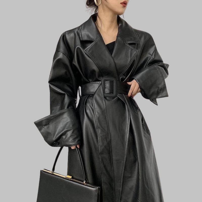 Ilga moteriška odinė striukė