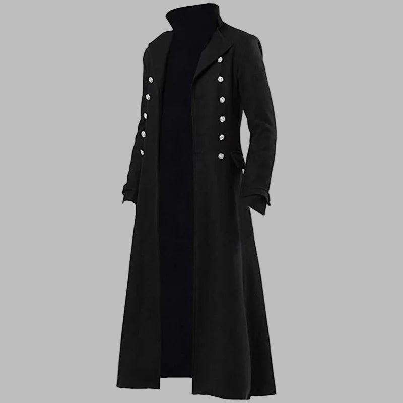 Ilgas Juodas Goth Rock Paltas su Metalinėmis Sagomis Elegantiškas Peržiūrėti parinktis