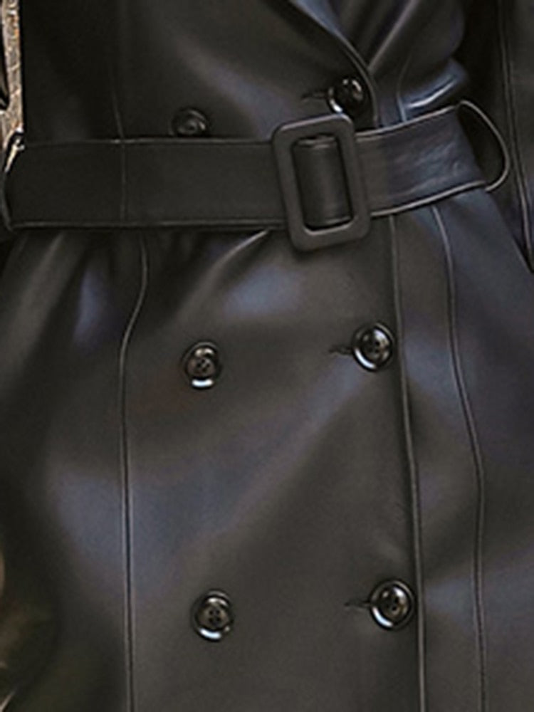 Ilgas odinis moteriškas paltas