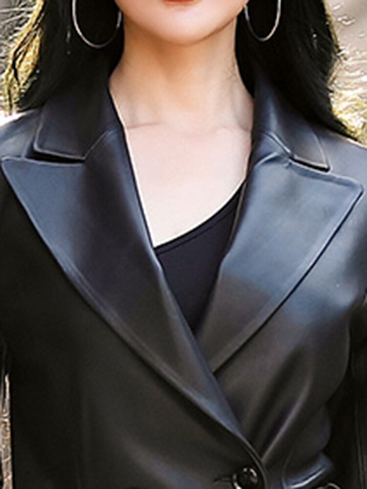 Norint sukurti unikalų ir elegantišką stilių, šis moteriškas paltas pagamintas iš juodos eko odos dėl kelių priežasčių: