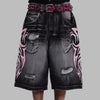 Ilgos džinsinės punk šortai su rožiniais raštais ir diržu Peržiūrėti parinktis
