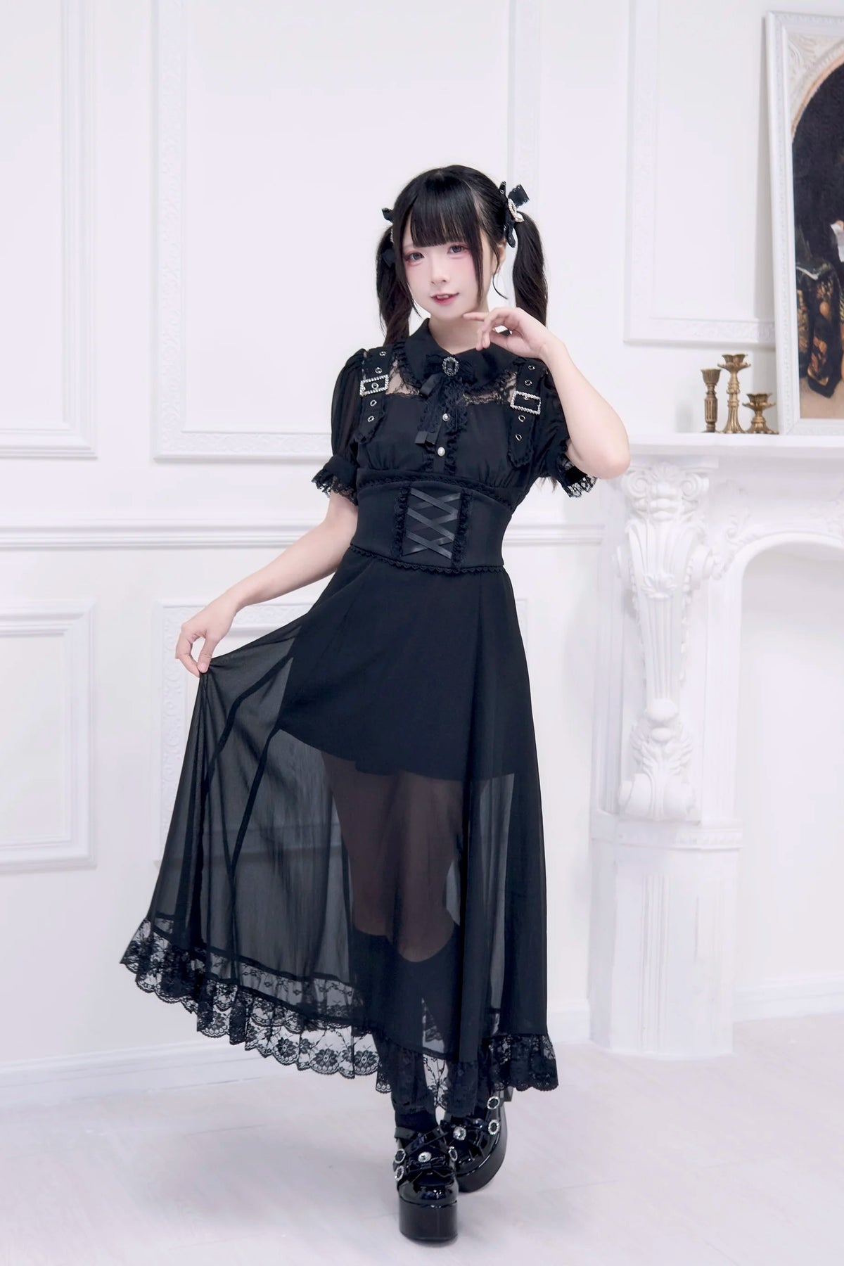 Jirai Kei Sukienka z Gorsetem Czarna Kawaii Długa
